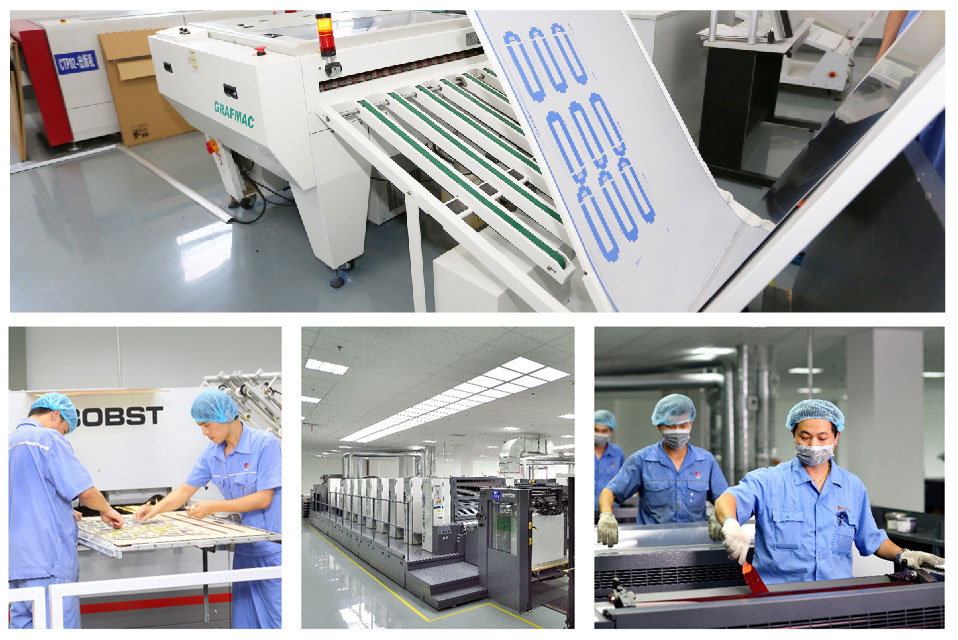 Kodak CTP machines, Roland printing machines, automatic lamination machines, automatic hot stamping machines, UV coating machines, Bobst die-cutters and folder gluers, various of processing techniques can be realized at the same time, which enable a best appearance of images and a steady product quality